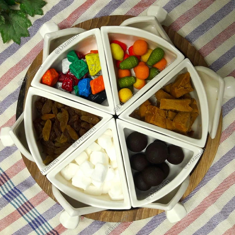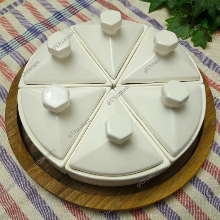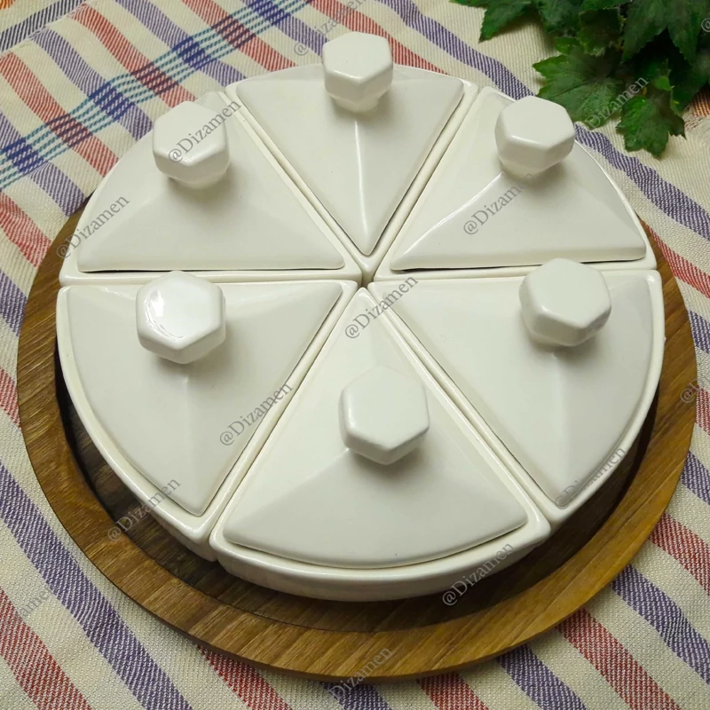 اردوخوری مثلثی درب دار مجموعه 6 عددی بدون سینی