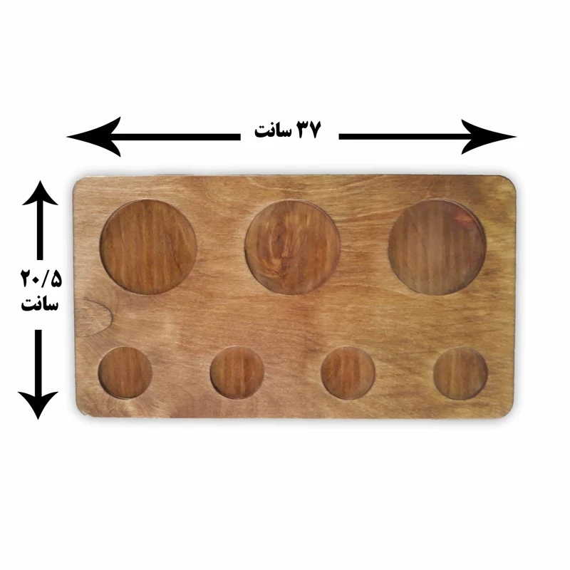 سینی چوبی پلای وود برای زیر پاسماوری و جا ادویه گرد سرکج مجموعه 7 عددی کامل